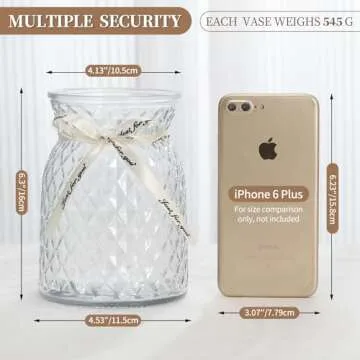 Show more Introducing our exquisite Large Size Glass Vases, a perfect blend of elegance and functionality. Crafted from high-quality thick borosilicate glass, these vases are not only durable but also radiate a beautiful shine under any light. Each set comes with two stunning vases, each adorned with a captivating diamond pattern that enhances their visual appeal, making them a must-have for any home decor enthusiast.