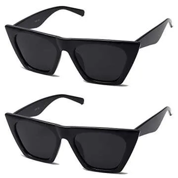 SOJOS 2 Pack Oversized Square Cateye Polarized Sunglasses Big Trendy Style Sunnies SJ2115, Black & Black