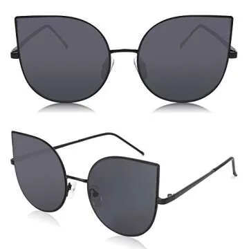 SOJOS Cat Eye Mirrored Flat Lenses Ultra Thin Light Metal Frame Women Sunglasses SJ1022 with Black Frame/Grey Lens