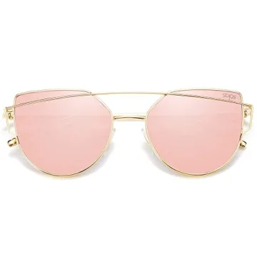 Show moreElevate your sunny day style with the chic and functional SOJOS Cat Eye Sunglasses. These fashionable shades, adorned with a striking gold frame and trendy pink mirrored lenses, blend sophistication and practicality seamlessly. Designed with the modern fashionista in mind, these sunglasses not only enhance your look but also provide exceptional UV protection, thanks to their UV400 rated lenses. Enjoy outdoor activities confidently, as the powerful lenses block harmful rays and filter out glaring sunlight, safeguarding your eyes from potential long-term harm during those bright summer days.