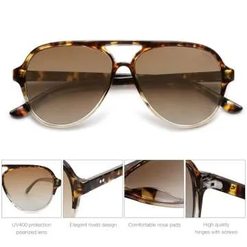 Show moreIntroducing the SOJOS Classic Polarized Aviator Sunglasses, designed to elevate your summer style while providing essential eye protection. Perfect for both men and women, these retro aviator shades embody a chic, timeless appeal that seamlessly blends with any outfit, whether you're at the beach, attending a festival, or exploring the urban landscape. With a fashionable tortoise gradient brown frame complemented by rich brown lenses, these sunglasses not only look good but perform exceptionally well in blocking harmful rays. Crafted for comfort and durability, they are here to serve your style needs season after season.