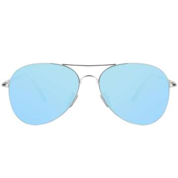 SOJOS Classic Sunglasses for Women Men Metal Frame Spring Hinges SJ1030, Silver/Blue