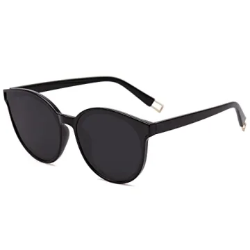 SOJOS Fashion Round Sunglasses for Women Men Oversized Vintage Shades SJ2057, Black/Grey