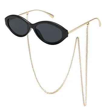 SOJOS Retro Small Cat Eye Sunglasses for Women,Trendy Vintage Narrow Rectangular Designer Stylish Womens Shades SJ2208 Black Frame Gold Temple