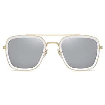 Show moreIntroducing the SOJOS Retro Square Polarized Sunglasses, a stylish fusion of classic design and advanced eye protection. With their stunning alloy frame that features a gold finish and crystal rim, these sunglasses are more than just a fashion accessory; they are equipped with HD UV400 TAC Polarized Lenses that effectively filter out sunlight-reflected glare. Protect your eyes from the harmful effects of UVA and UVB rays while looking effortlessly chic. Designed thoughtfully for both men and women, these versatile sunglasses offer an ideal blend of durability and style suitable for any climate and weather conditions.