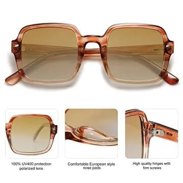 SOJOS Retro Square Polarized Sunglasses for Women Men Classic Trendy Sunnies SJ2226, Brown Pattern/Brown