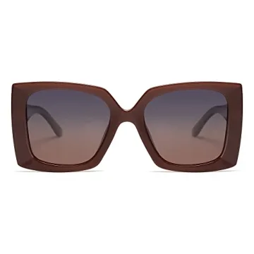 SOJOS Retro Square Polarized Womens Sunglasses Trendy Oversized Large Women's Big Shades SJ2224 Brown Grey Lens