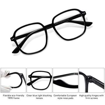 Show moreIntroducing the SOJOS Square Blue Light Blocking Glasses, a perfect blend of style and functionality designed specifically for women. Crafted with high-definition anti-blue light lenses, these glasses are essential for individuals who spend long hours in front of computers or electronic screens. They significantly reduce eye fatigue and help maintain a natural sleep cycle, making them a must-have accessory for the modern lifestyle. The frames are constructed from unbreakable, eco-friendly TR90 material, known for its super toughness, wear-resistance, and stress-resistance, ensuring that they are durable and long-lasting while providing a comfortable fit.