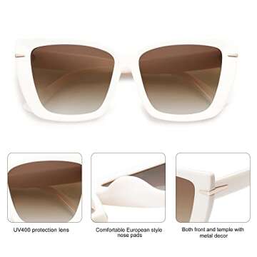 SOJOS Trendy Large Oversized Cat Eye Sunglasses for Women 70s UV400 Designer Shades SJ2231, White/Brown