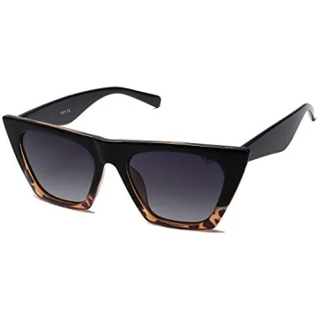 SOJOS Trendy Oversized Square Cateye Polarized Sunglasses Womens Big Frame Shades SJ2115, Black&Tortoise/Grey