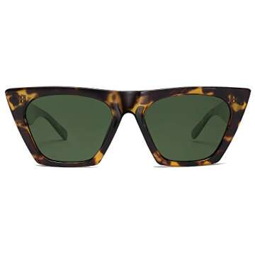 SOJOS Trendy Oversized Square Cateye Polarized Sunglasses Womens Big Frame Shades SJ2115, Dark Tortoise/Green