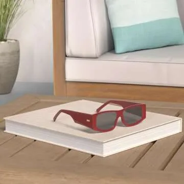 SOJOS Trendy Y2K Rectangle Polarized Sunglasses for Women Men Fashion Designer Rave Sunglasses SJ2228, Dark Red/Grey