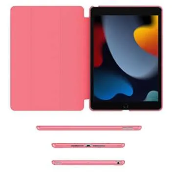 Soke Case for iPad 9th Generation 2021/ iPad 8th Generation 2020/ iPad 7th Gen 2019, [Slim Trifold Stand + Auto Wake/Sleep], Premium Protective Hard PC Back Cover for iPad 10.2 Inch (Hibiscus)