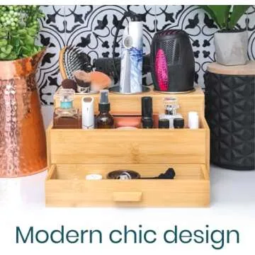 Sol-Eco Hair Tool Storage Organizer, Bamboo Hair tool organizer for Bathroom, Kitchen and Makeup,Hair organizer storage Perfect for Storing Blow Dryer, Straightener and Brush