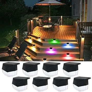 Solar Deck Lights 8 Pack RGB Outdoor Solar Step Lights Waterproof Solar Fence Lights Solar LED Stair Light Warm White Color Changing Mode for Stairs,Fence,Deck,Patio Yard,Pathway,Pool,Porch,Step11