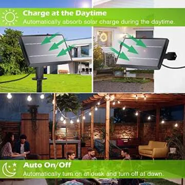 Show more Transform your outdoor space into a captivating oasis with our Solar Outdoor String Lights. Perfect for gatherings, celebrations, or simply enhancing your evening ambiance, these lights feature a robust design with a large, efficient solar panel for exceptional power conversion. Made of high-quality monocrystalline silicon, our solar lights charge efficiently even in low-light conditions, ensuring you enjoy up to 12 hours of radiant lighting after a full charge. Each string is crafted with durable, shatterproof LED bulbs embedded in flexible rubber strands, making them ideal for year-round use in any weather.