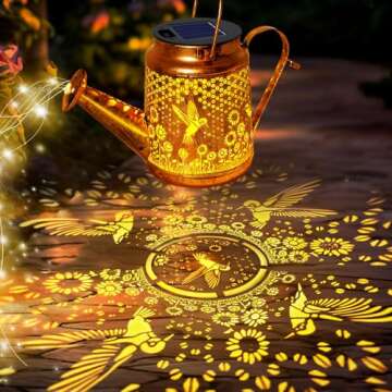 Introducing the enchanting Solar Watering Can Lights, a stunning addition to any garden that brightens your outdoor space while showcasing your love for nature. Perfect for Mother's Day or any special occasion, these charming hummingbird hanging lanterns serve as delightful garden decorations that transform your backyard into a magical retreat. Crafted with a unique gold copper color and intricate hollow out metal veneer, these solar lights create a warm ambiance after sunset,...