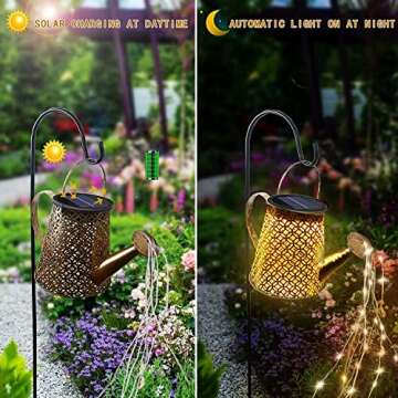 Solar Watering Can with Lights - Solar Lights Outdoor Decorations Large Hanging Solar Garden Lights with Bracket Waterproof Watering Can Landscape Light for Patio Gardening Pathway Gift(Warn White)