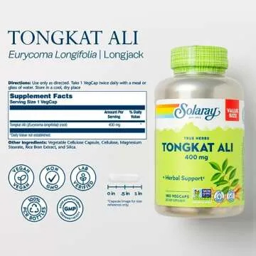 SOLARAY Tongkat Ali 400 mg - Longjack Tongkat Ali for Men - Herbal Support for Men's Health and Vitality - Vegan, Non-GMO, Lab Verified - 180 Servings, 180 VegCaps