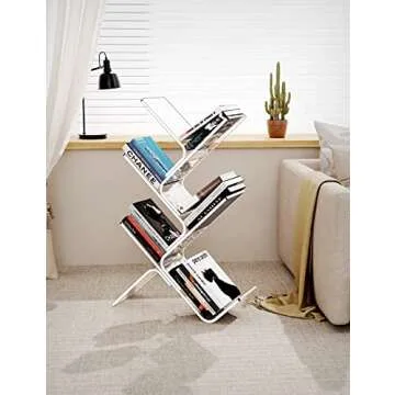 solaround Acrylic Tree Bookcases Modern Clear Wall Bookshelf Standing Bookcase Tree Organizer Decorative Storage Rack(5-Tier Floor, Clear)