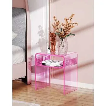solaround Clear Acrylic End Table 2-Tier Bedside nightstand for Living Room Bedroom Home Decor (Pink)