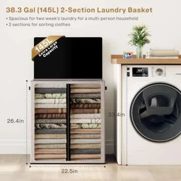 SOLEDI Large Double Laundry Hamper with Lid, Collapsible Clothes Hamper 2 section with Removable Bags, Space-Saving Laundry Basket for Bedroom, Dorm, College