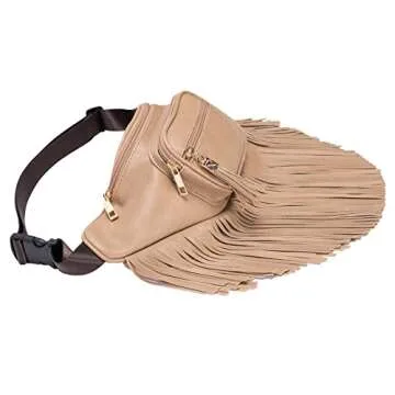 Solene Fringe Waist bag for women with Multi Zipper Pockets - (KL088, Stone)