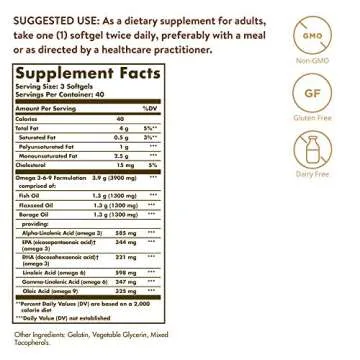 Solgar 1300 mg Omega 3-6-9, 120 Softgels - Fish Oil Supplement - Support for Heart, Joint & Skin Health - Includes Flaxseed & Borage - Contains EPA & DHA - Omega 3 Fatty Acids - 40 Servings