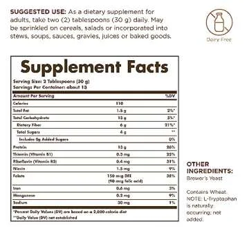Show moreIntroducing Solgar Brewer's Yeast Powder, a premium-quality product that embodies the brand's commitment to health and wellness for over 75 years. This natural primary Brewer's Yeast (Saccharomyces cerevisiae) is designed to be a versatile addition to your kitchen. With a convenient 14 oz pack of 2, it features a nutrient-rich profile that is unflavored, unsweetened, and contains absolutely nothing added. This means it retains its authentic taste and nutritional benefits, making it the perfect choice for health-conscious individuals seeking natural supplements.