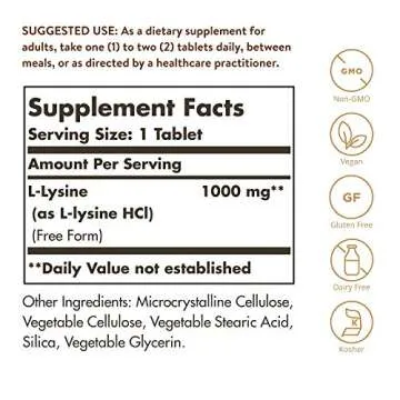 Show more Discover the power of Solgar L-Lysine 1000mg, a premium dietary supplement designed to support various internal body functions and enhance your overall wellness. This essential amino acid is indispensable for your health as your body cannot produce it on its own. Packed with benefits, this supplement delivers an array of advantages that cater to skin tissue integrity, energy production, and optimal nutrient absorption.