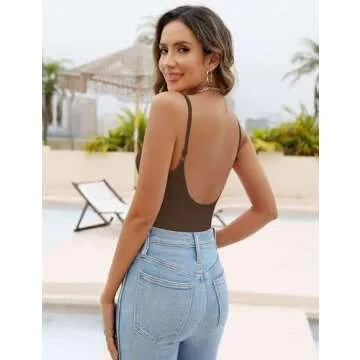 Solid Adjustable Spaghetti Strap Tops Basic Tank Top V Neck Sleeveless Tops for Women for Under Clothes Coffee M