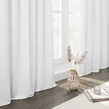 Solid White Curtains 96 Inches Long 2 Panels Back Tab Sheer Linen Curtain Modern Farmhouse Coastal Decor Off White Cotton Textured Curtains 96 inch Length for Patio Sliding Door Office Bedroom