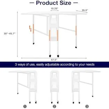 Soligel Folding Craft Table, Mobile Cutting Table with Storage Shelves, Sewing Table for Home Office Sewing Room Craft Room, Height Adjustable35''-45.7'' White