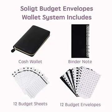 Soligt All-in-One Cash Envelopes Wallet with 12 Budget Envelopes & Budget Sheets - Black