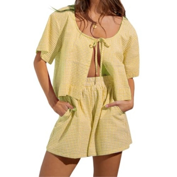 Show more Introducing the SOLILOQUY Women 2 Piece Cute Pajama Set, the ultimate blend of comfort and style! This trendy pajama set is designed for the modern woman who values both aesthetics and practicality. Crafted from a premium cotton and polyester blend, this lightweight ensemble is perfect for lounging at home or enjoying a casual day out. The set includes a fashionable peplum top with puff sleeves that exude a coquette charm, paired with ruffled hem shorts that provide unparalleled comfort. Its floral print adds a delightful vintage touch, making it a must-have addition to your wardrobe.