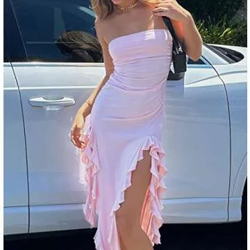 SOLILOQUY Women Y2K Strapless Tube Mini Dress Summer 2000s Aesthetic Off Shoulder Hollow Out Backless Bodycon A Line Dresses, K-pink Slit Tube Dress
