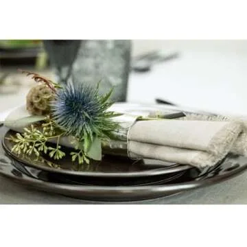 Solino Home Fringe Linen Dinner Napkins 20 x 20 Inch - 100% Pure Linen Natural Cloth Napkins Set of 4 for Spring, Easter - Handcrafted and Machine Washable