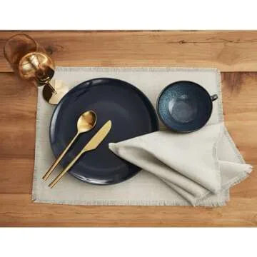 Solino Home Fringe Linen Placemats 19" L x 14" W Inch - 100% Pure Linen Natural Cloth Placemats Set of 4 - Washable Fabric Place Mats for Spring, Easter
