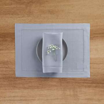 Solino Home Hemstitch Linen Placemats 19" L x 14" W Inch - 100% Pure Linen Dusty Blue Easter Cloth Placemats Set of 4 - Classic Hemstitch, Washable Fabric Table Mats