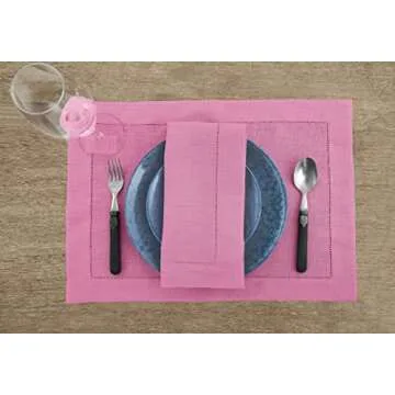 Show more Introducing the exquisite 100% Pure European Flax Linen Dinner Napkins, a timeless addition to your dining experience. Handcrafted by skilled artisans, these napkins are not just practical but also a touch of elegance that elevates any dining occasion. Measuring 20 x 20 inches, each set includes four stunning napkins in a delightful Flamingo Pink Hemstitch color, perfect for those who wish to make a bold yet sophisticated statement on their dining table. These napkins are designed for easy care, as they are machine washable and require low iron as needed. To ensure a pristine look, a quick steam iron will bring back their crisp elegance.