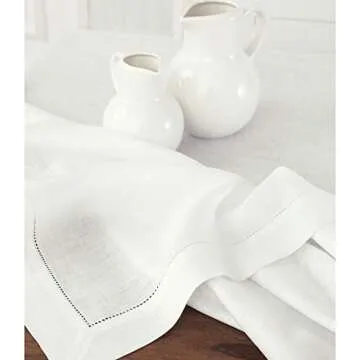 Solino Home White Linen Tablecloth 120" L x 60" W Inch - 100% Pure Linen Classic Hemstitch Table Cloth for Rectangle Tables - Machine Washable Tablecloth for Wedding, Spring, Easter