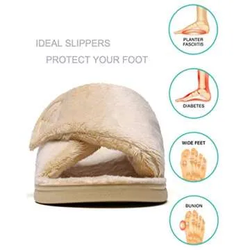SOLLBEAM Women's Plantar Fasciitis Fuzzy House Orthopedic Adjustable Slippers With Arch Support