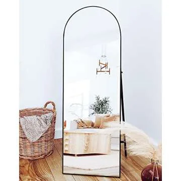Sollertia Full Length Mirror Arched Mirror Wood Frame Standing Mirror Full Length, Large Arched Mirror Full Length Mirror with Stand Black Full Body Mirror, 64" x 21"