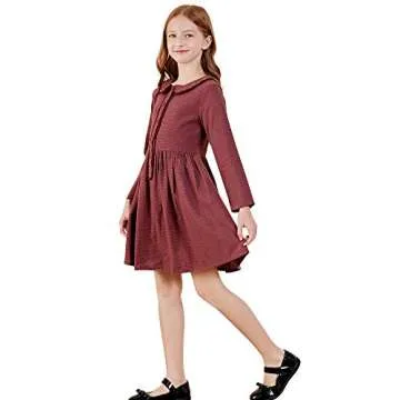 SOLOCOTE Girls Plaid Dress Cotton Casual Spring Long Sleeve Dresses Peter Pan Collar 191114 Burgundy C 7-8Y
