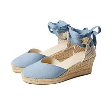 Show moreIntroducing the Soludos Lyon Wedge Espadrille in a refreshing Sky Blue color— the perfect blend of style and comfort for your summer wardrobe. Crafted with care, these wedges offer a delightful combination of breathable fabric and a durable jute-wrapped sole, ensuring you can step out confidently while keeping your feet comfortable. Designed with a chic open-toe silhouette, they provide just the right amount of coverage, and the adjustable ankle strap adds an elegant touch while keeping your fit secure.