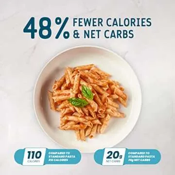 Show more Introducing the guilt-free pasta revolution! Enjoy your favorite comfort food without compromising on your health goals with our unique, low-calorie pasta. Perfect for those mindful about their diet, this pasta boasts just 110 calories and 20g of net carbs per serving, making it a nourishing alternative to traditional pasta options. Imagine indulging in an attractive pasta dish without the worry of excess calories – it’s now a reality!