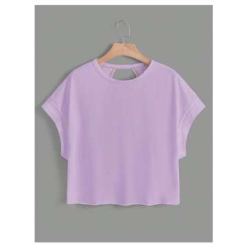 Show more Introducing the SOLY HUX 2024 Open Back Tops for Women! This fashionable piece is more than just a t-shirt; it’s an expression of style and comfort. The innovative criss-cross cut-out design not only elevates your outfit but also keeps you feeling cool and comfortable throughout the day. Made from a soft and stretchy fabric, this casual tee is perfect for women who want to blend style with ease. With a round neck and short sleeves, this top exudes effortless charm, making it ideal for various occasions. Available in a chic lilac purple, it's a must-have addition to any wardrobe!