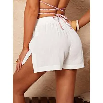 SOLY HUX Swim Cover Up Shorts for Women Sheer Split Bikini Shorts Beach Swimwear White S