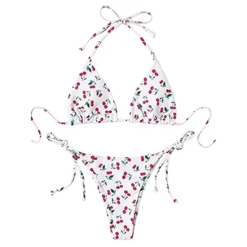 Show more Get ready to turn heads this summer with the SOLY HUX Women's Bikini Sets Cherry Print Halter Triangle Tie Side Bathing Suits! This stunning two-piece swimsuit features a playful cherry print that adds a delightful touch to your swimwear collection. Crafted from a stretchy, soft, and comfortable fabric, this bikini is designed to give you the perfect fit while ensuring maximum comfort whether you’re lounging by the pool or splashing in the ocean. Say goodbye to discomfort and hello to stylish, confident beach days!