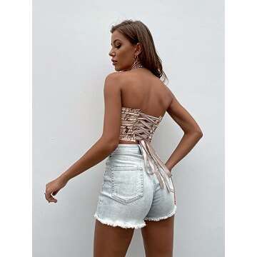 Lace Up Back Sleeveless Strapless Bandeau Tube Crop Corset